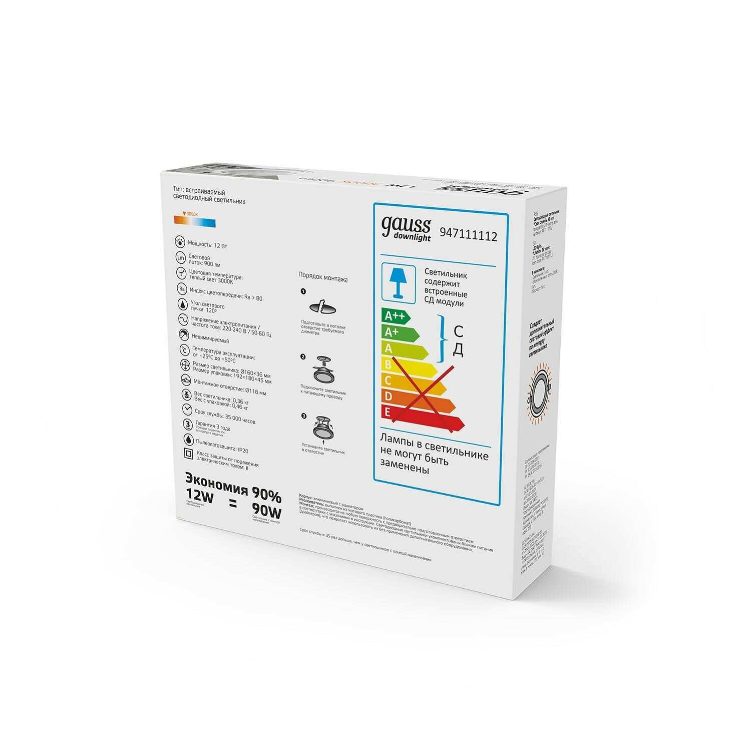 | Комплектация | Встраиваемые светильники Gauss 947111118 |