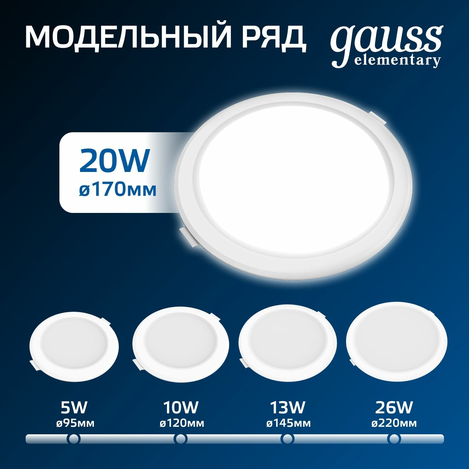 СохранитьСветильник потолочный встраиваемый Downlight круг 20W 4000K 220V IP20 170*26 белый Gauss Elementary интересное: