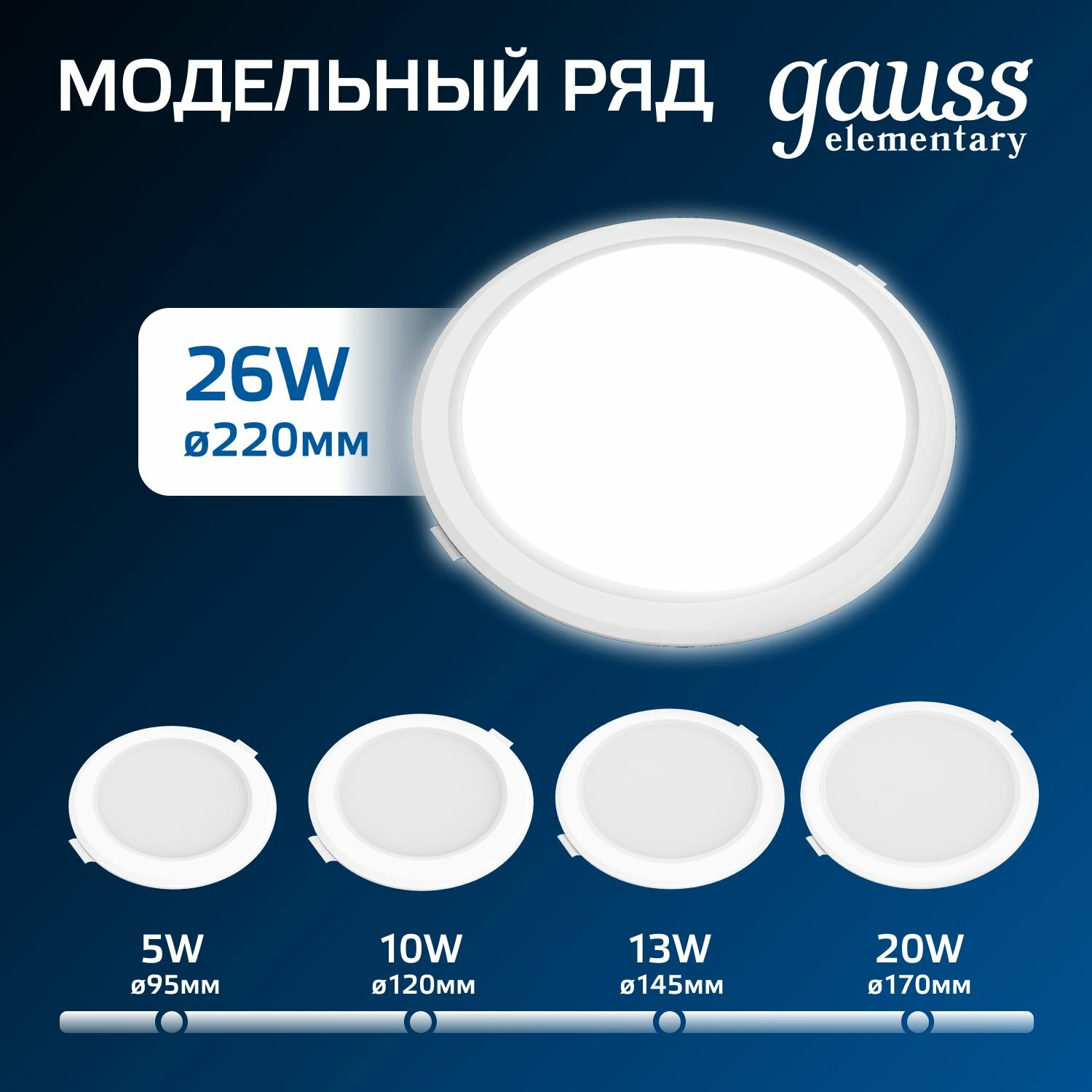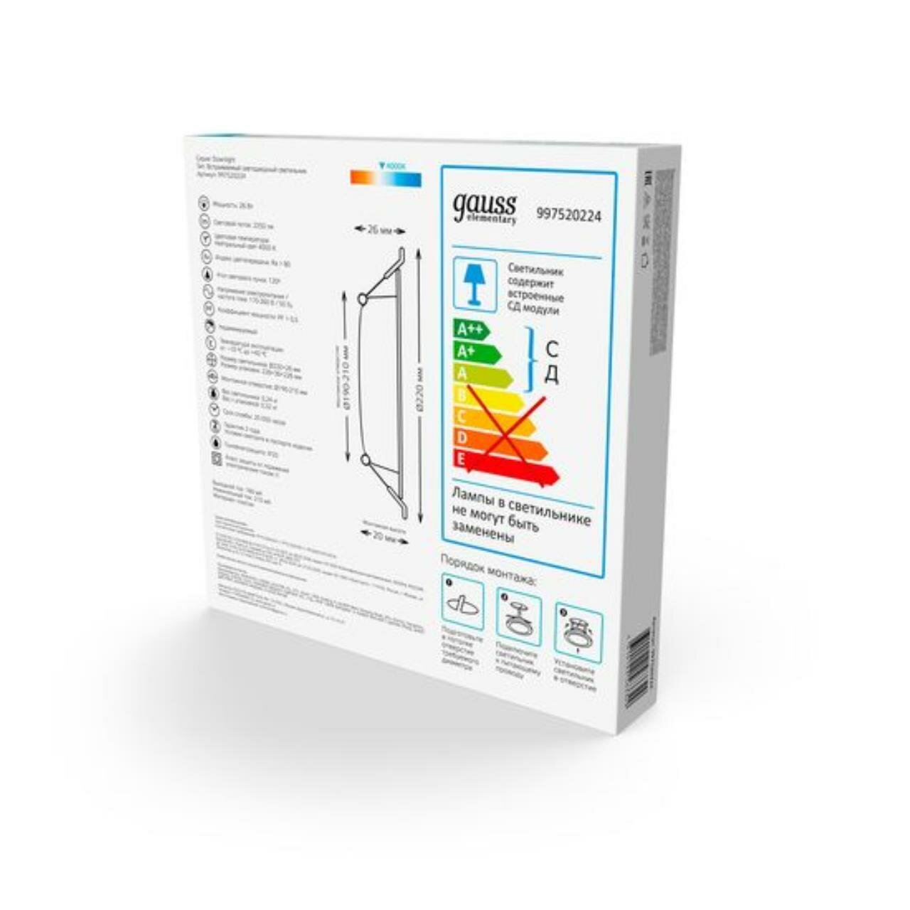 Купить Светильник потолочный встраиваемый Downlight круг 26W 4000K 220V IP20 220*26 Gauss Elementary
