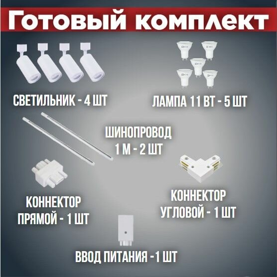 СохранитьКомплект трековой системы, 4 светильника + аксессуары, 4000К, белый, IN HOME интересное: