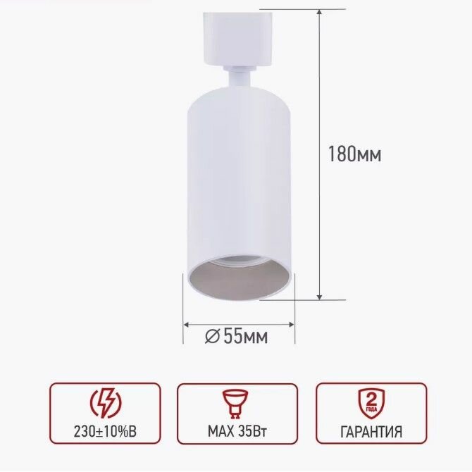 Светильник трековый TR-GU10-TL 6RW под лампу GU10 с подсветкой белый IN HOME
