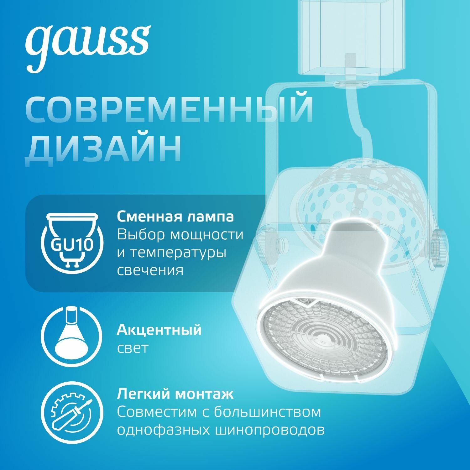 Купить Трековый светильник Gauss куб GU10 220V IP20 60*145мм белый однофазный 1/50
