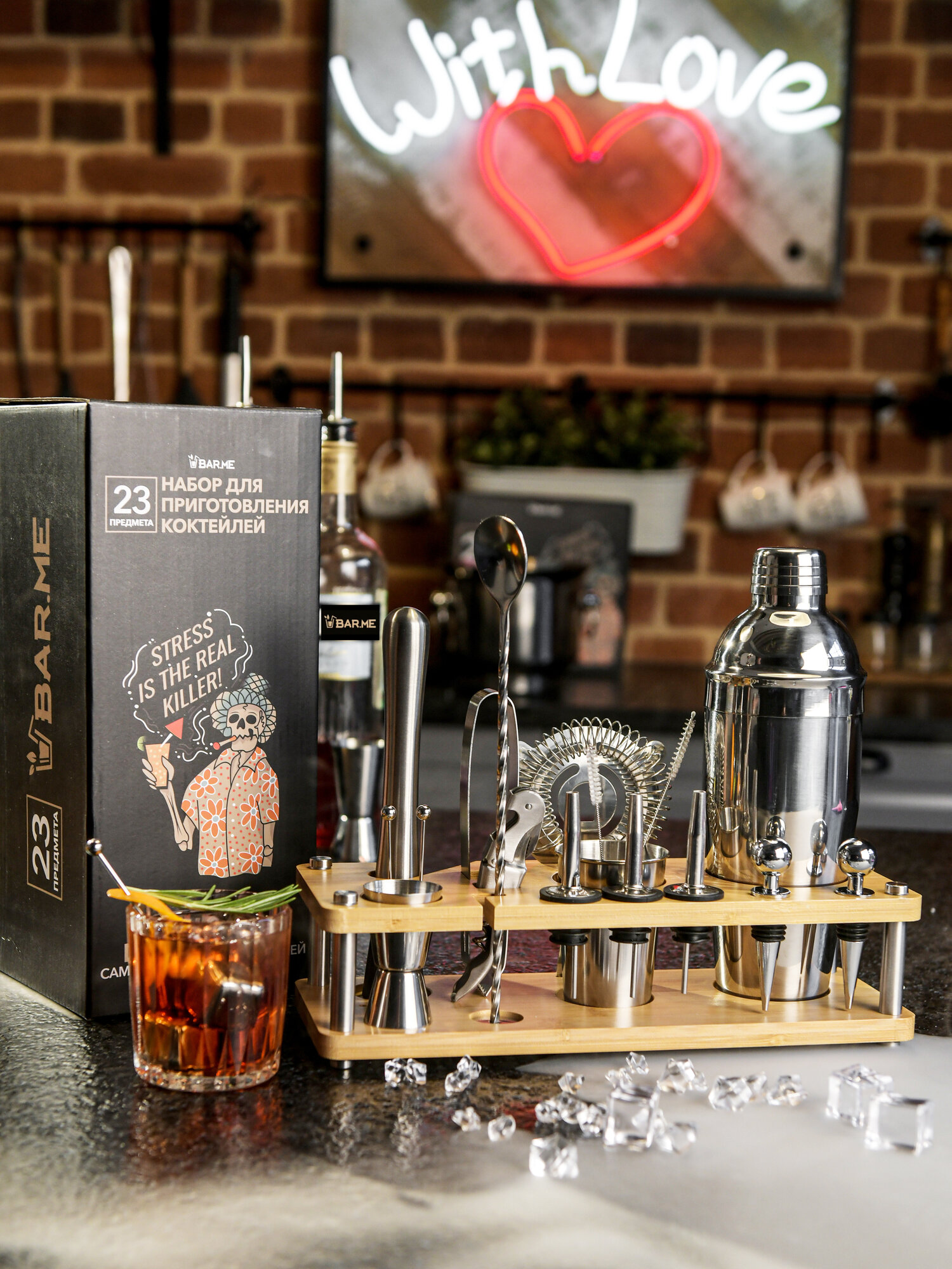Набор для приготовления коктейлей BARME, набор бармена, шейкер, на подставке, подарок мужчине, папе