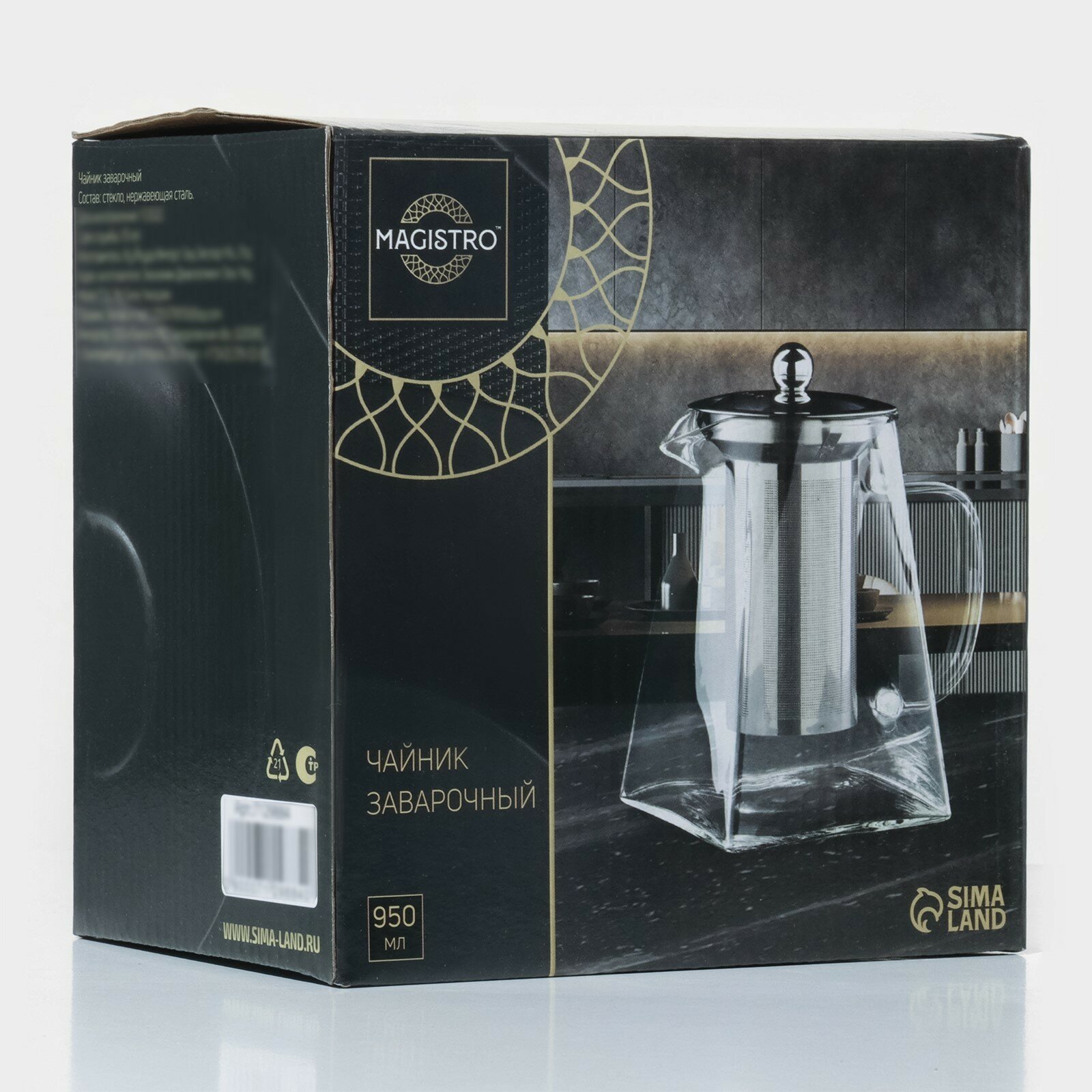 Купить Чайник стеклянный заварочный Magistro «Дарси», 950 мл, с металлическим ситом