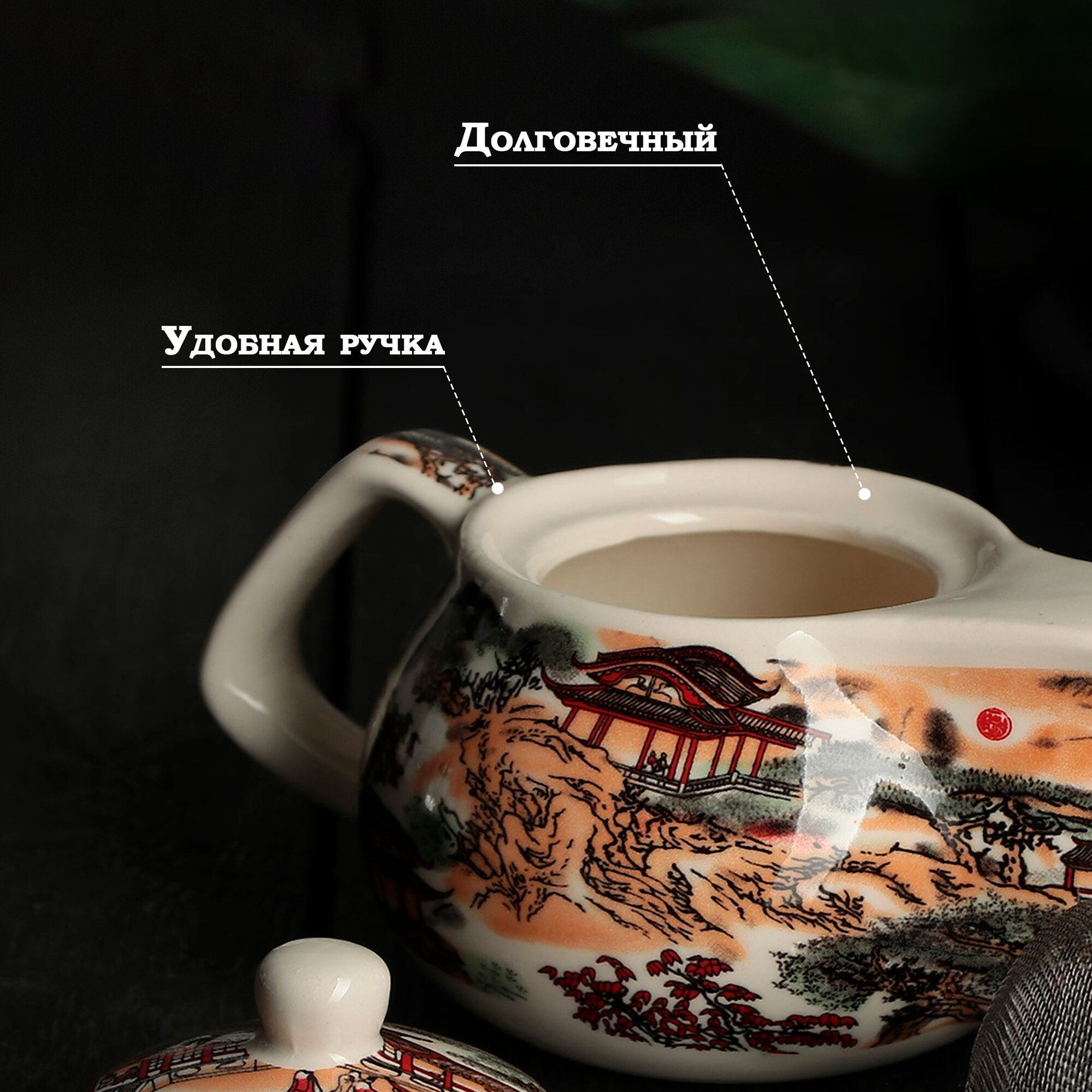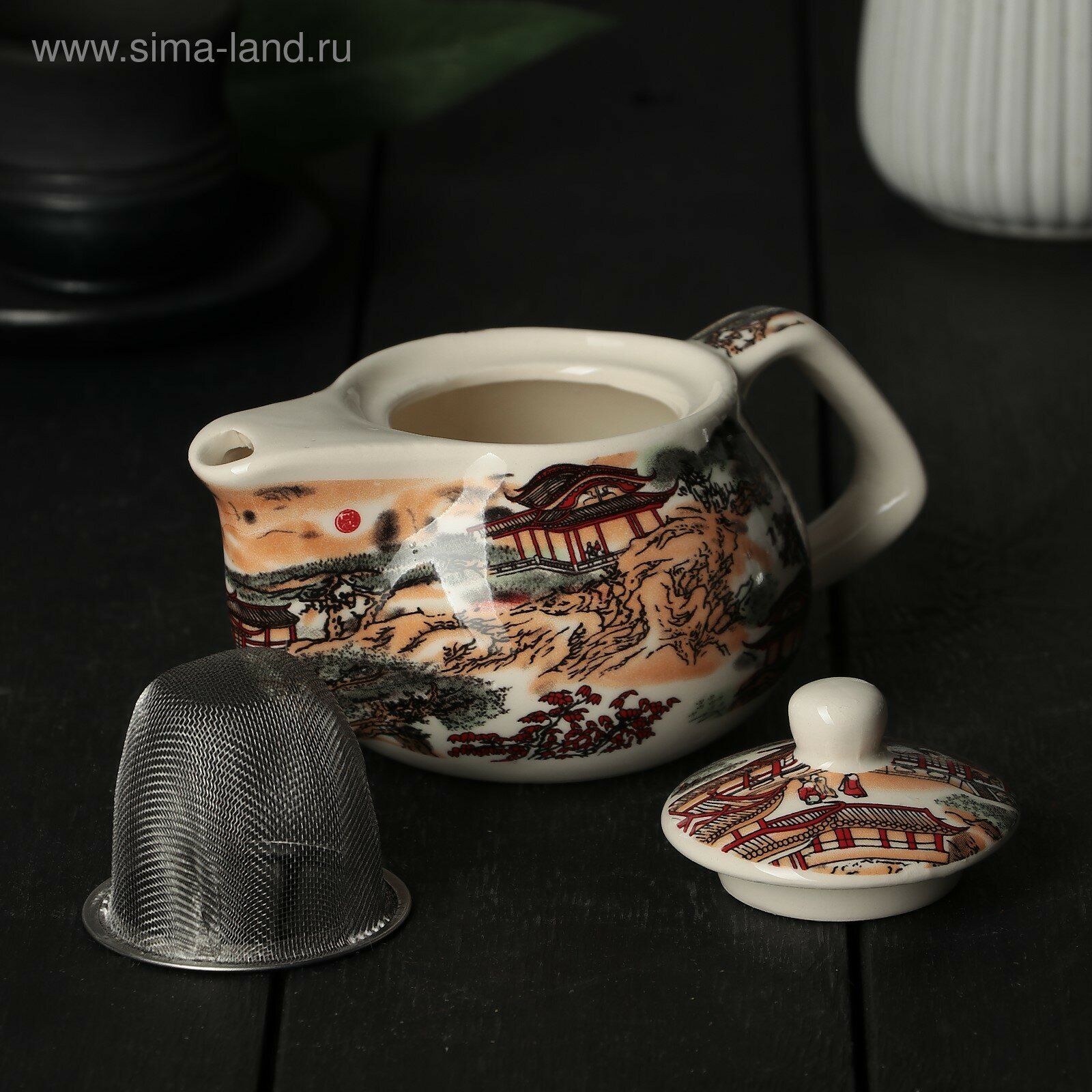 Чайник керамический заварочный с металлическим ситом «Пейзаж», 200 мл