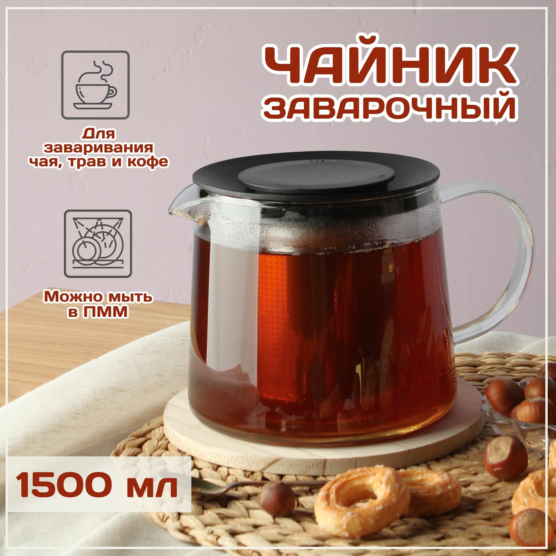 Чайник заварочный стеклянный 1,5 л