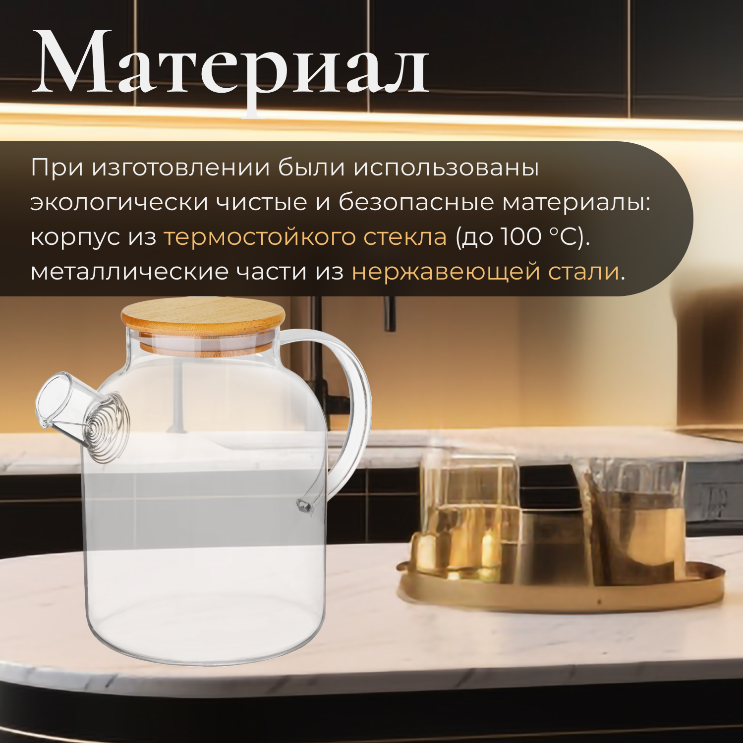 Чайник заварочный Perfecto Linea , стеклянный, 1300 мл, BAMBOO, (38-130018)