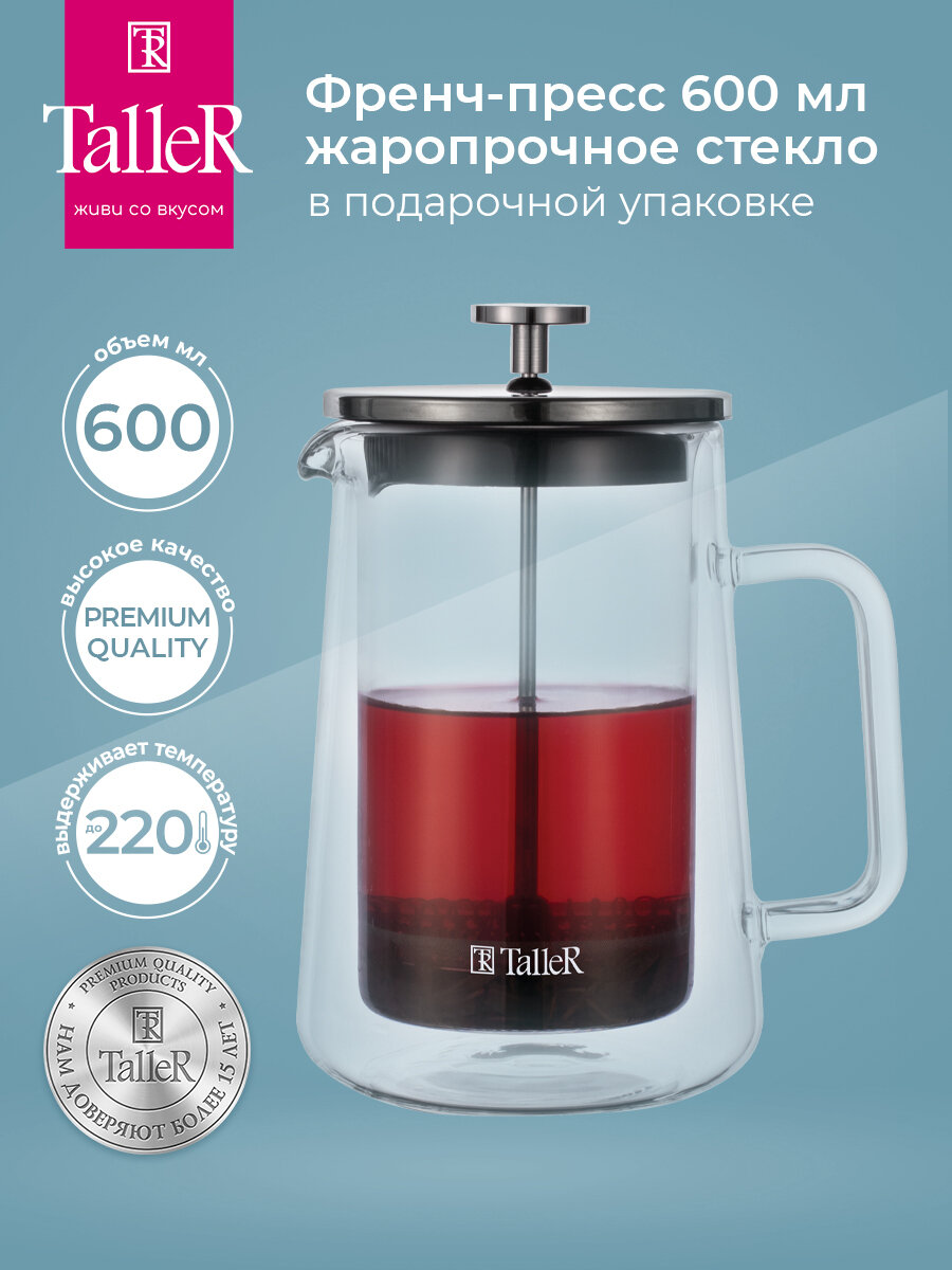 Френч-пресс TALLER 32335 600 мл, прозрачный/серебристый интересное:
