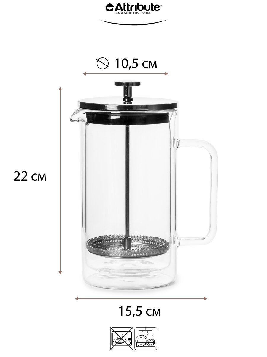 Купить Френч-пресс для горячих напитков Attribute DOUBLE WALL 1000мл+аксессуары