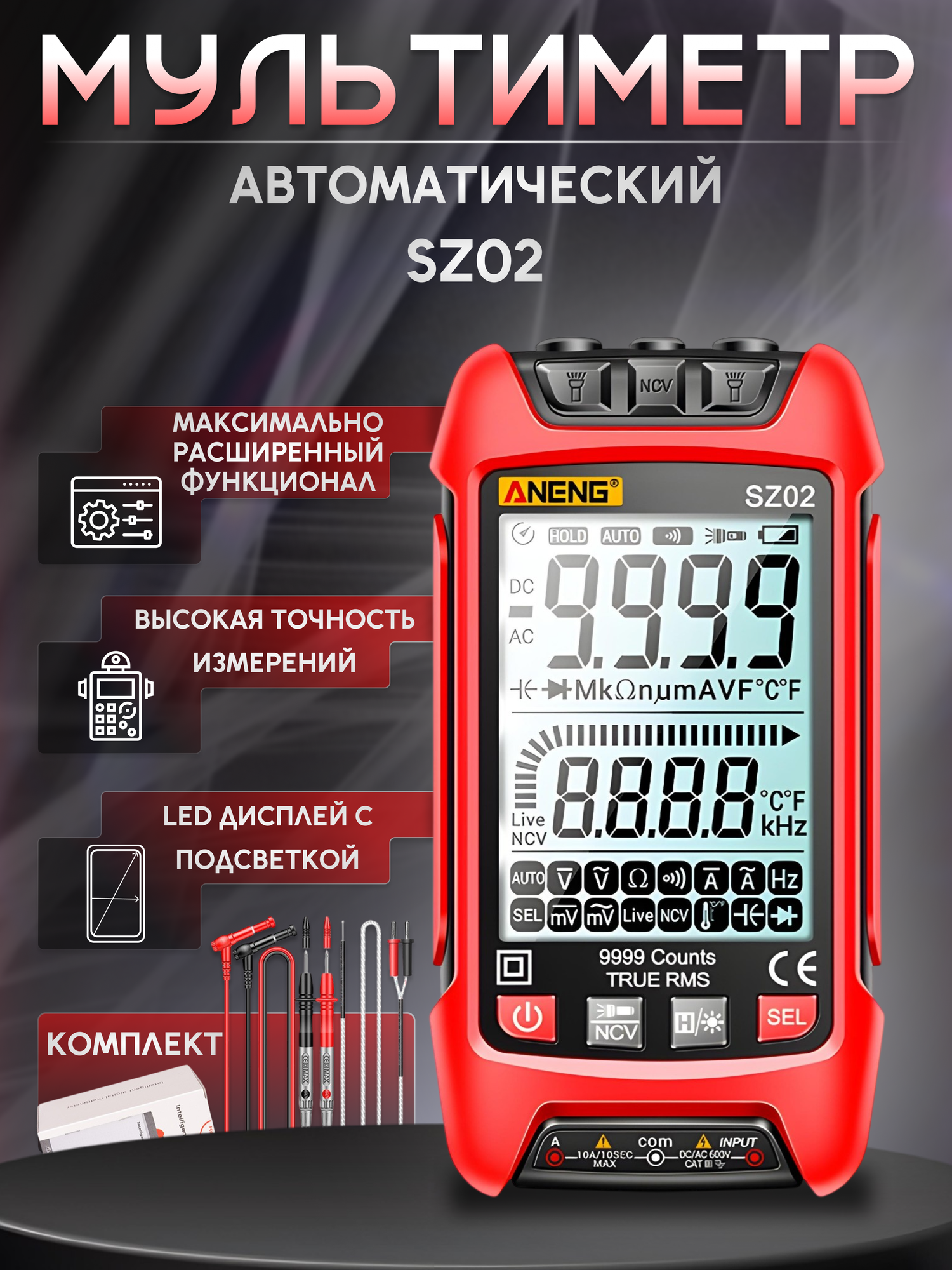 Цифровой автоматический мультиметр высокой точности, 9999 отсчетов, датчик NCV, тестер интересное: