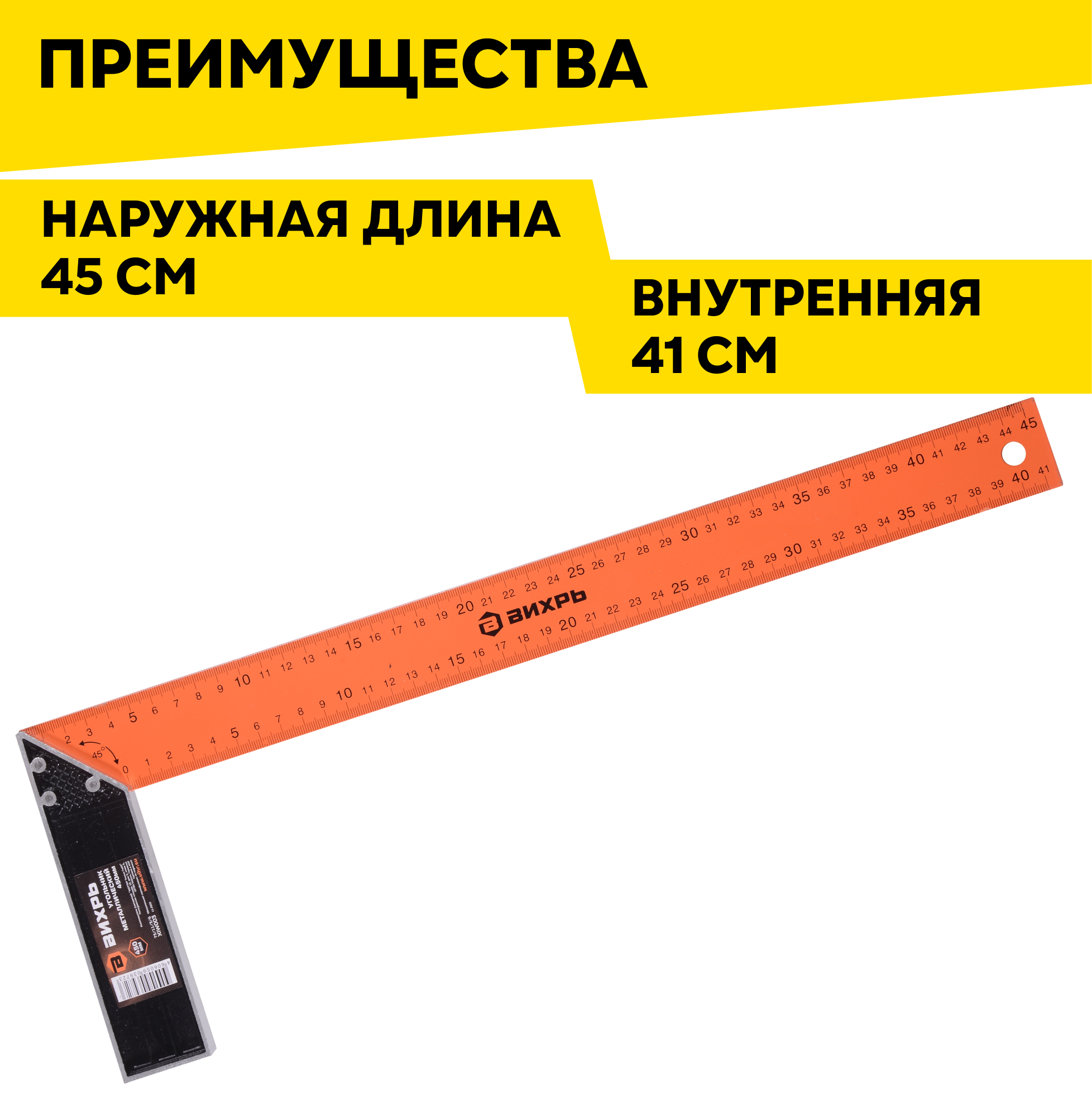 Угольник металлический Вихрь, 450х90х2 мм, двусторонняя метрическая шкала
