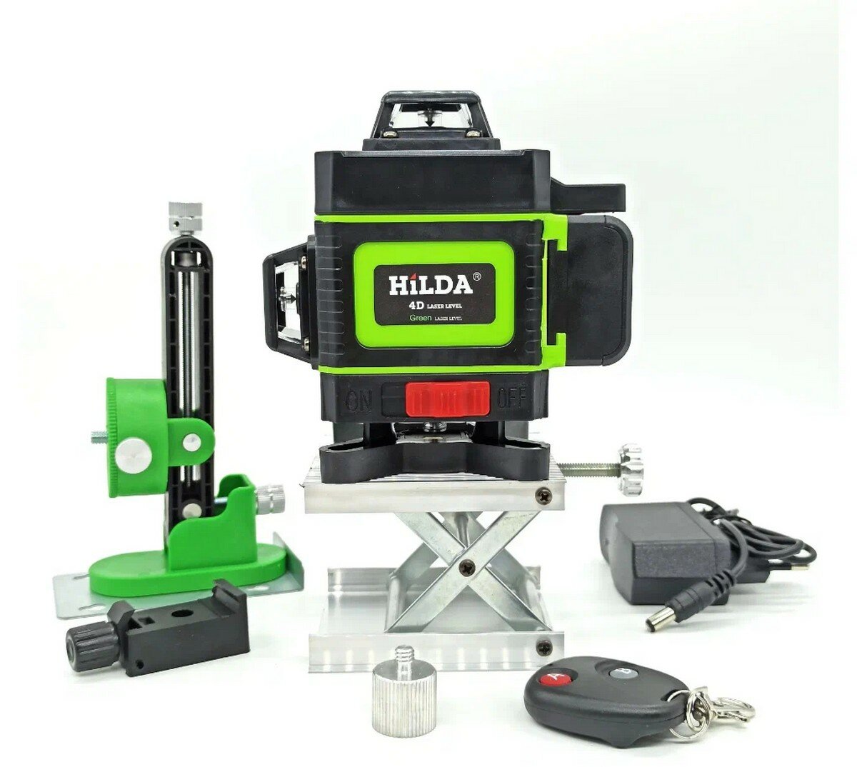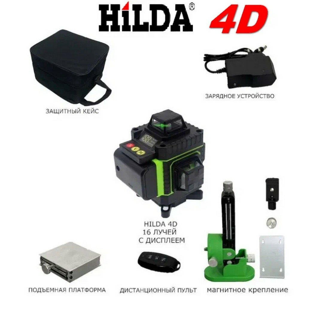 Купить Лазерный нивелир уровень Hilda 4D x16 с зелёными лучами, калибровка