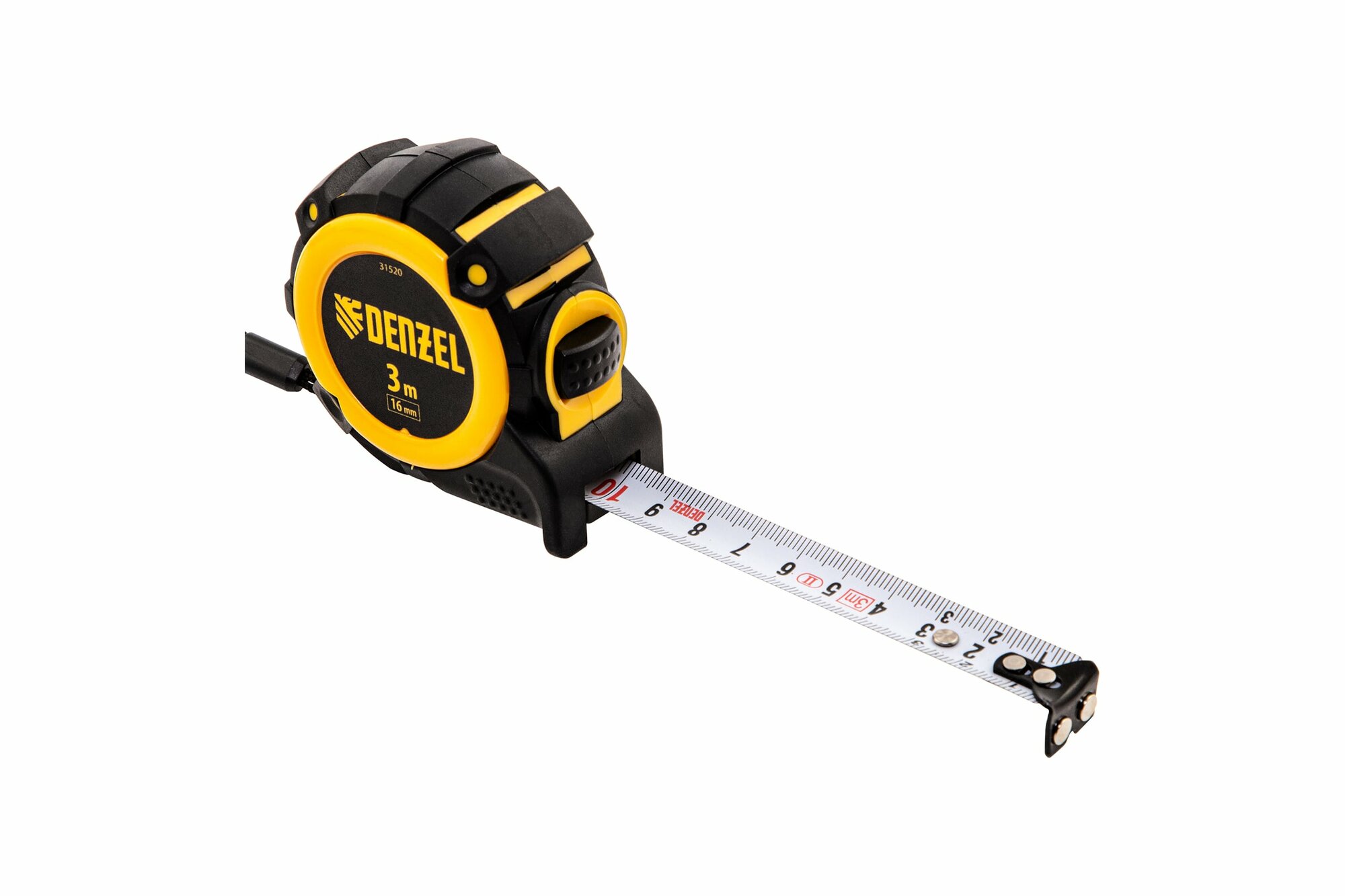 Купить Рулетка 3м х 16мм Denzel автоматич. фиксац., нейлон. покрытие, магнит. зацеп, двухстор. разметка 31520