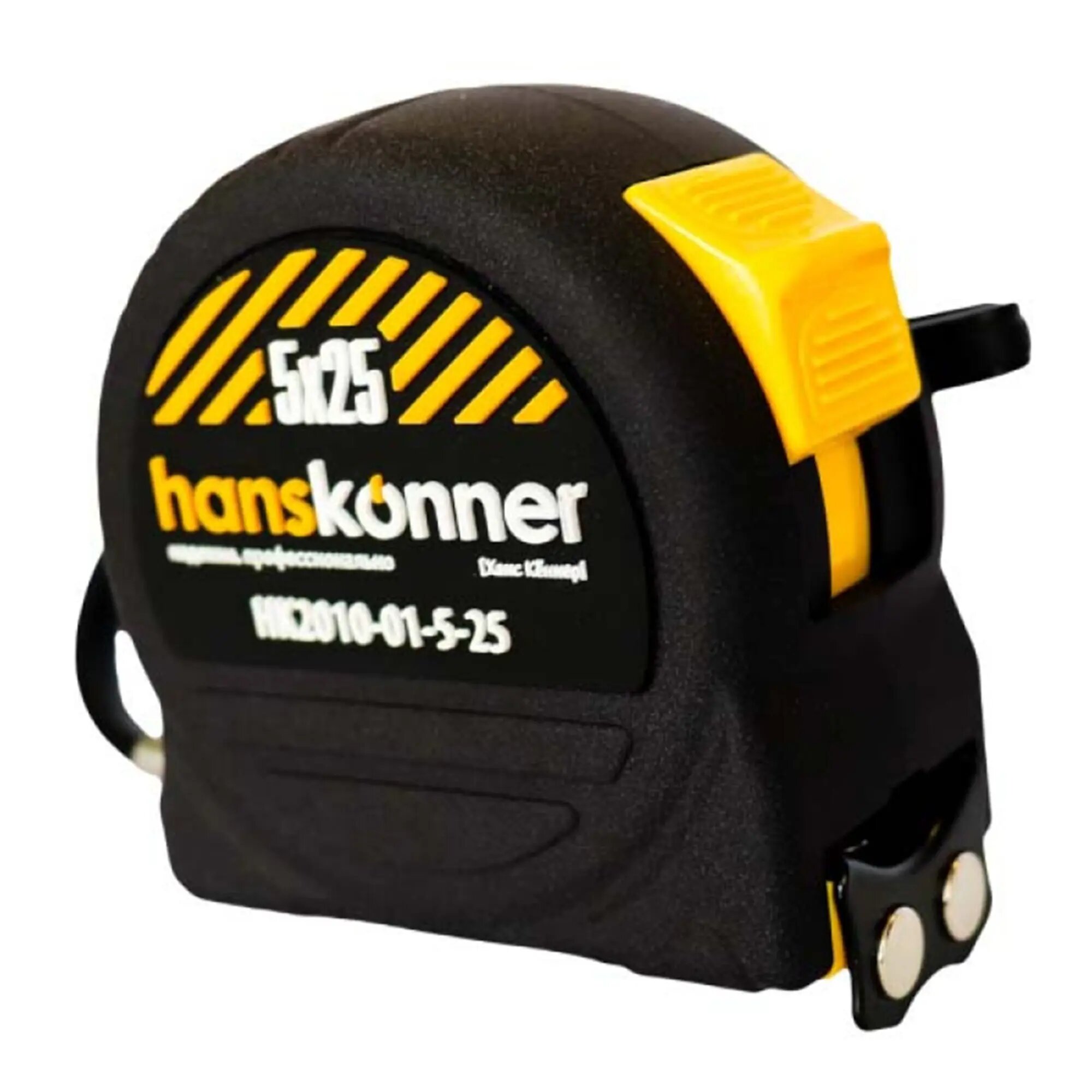 Рулетка 5x25мм, 2 стопа, компактный корпус, мощный магнит, Hanskonner