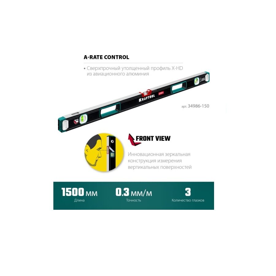 Купить Уровень строительный, 1500 мм, A-Rate Control KRAFTOOL 34986-150