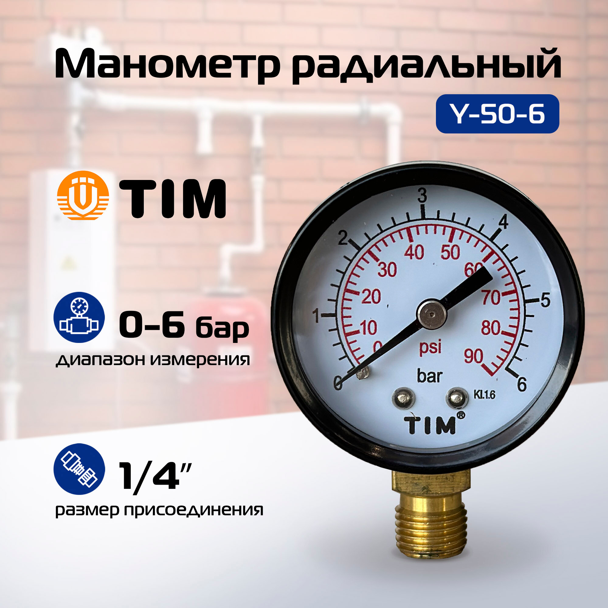 Аналоговый манометр Tim Y50-6bar 6 бар интересное: