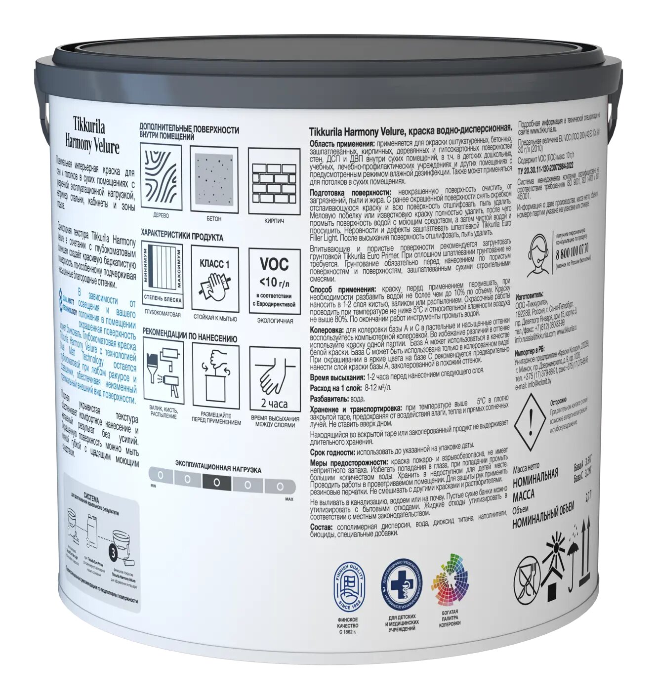 Tikkurila Harmony,Интерьерная глубокоматовая экологичная краска, придающая поверхности бархатистый эффект,база А, 9л