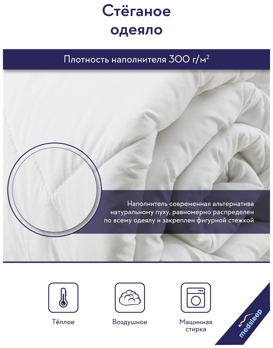Medsleep Одеяло полуторное, всесезонное "Swan Princess" теплое 300 г/м2, микроволокно "Лебяжий пух", 140х200