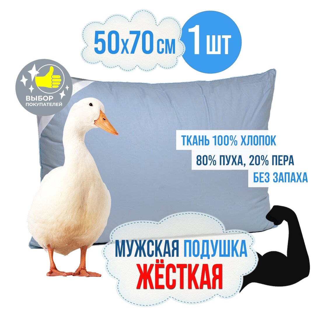 Подушка жесткая мужская, 50x70 см, Пух/Перо PREMIUM, Чехол 100% хлопок интересное: