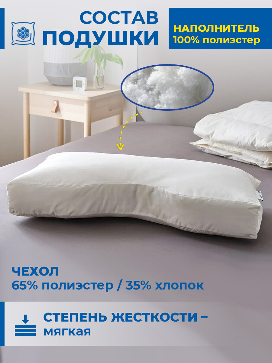 Подушка ИКЕА "РУМСМАЛЬВА", анатомическая и ортопедическая, полиэстер и хлопок, белая, 50x70х12 см