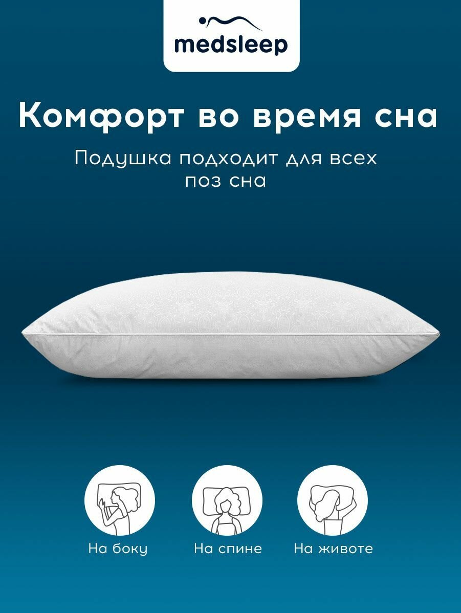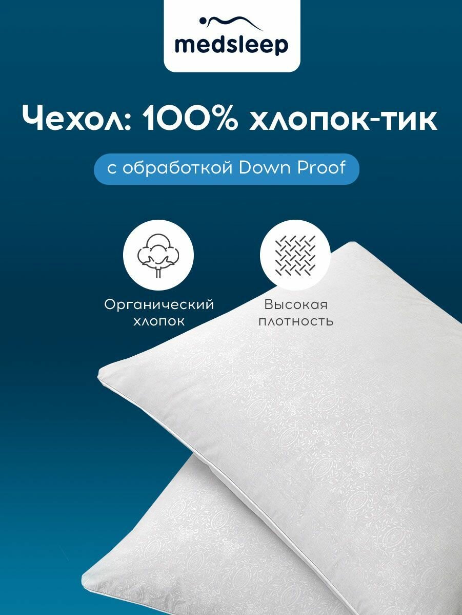 Купить Medsleep Подушка "LANDAU" хлопок, пух Сибирского гуся, Средняя жесткость, 50x70 1-пр.