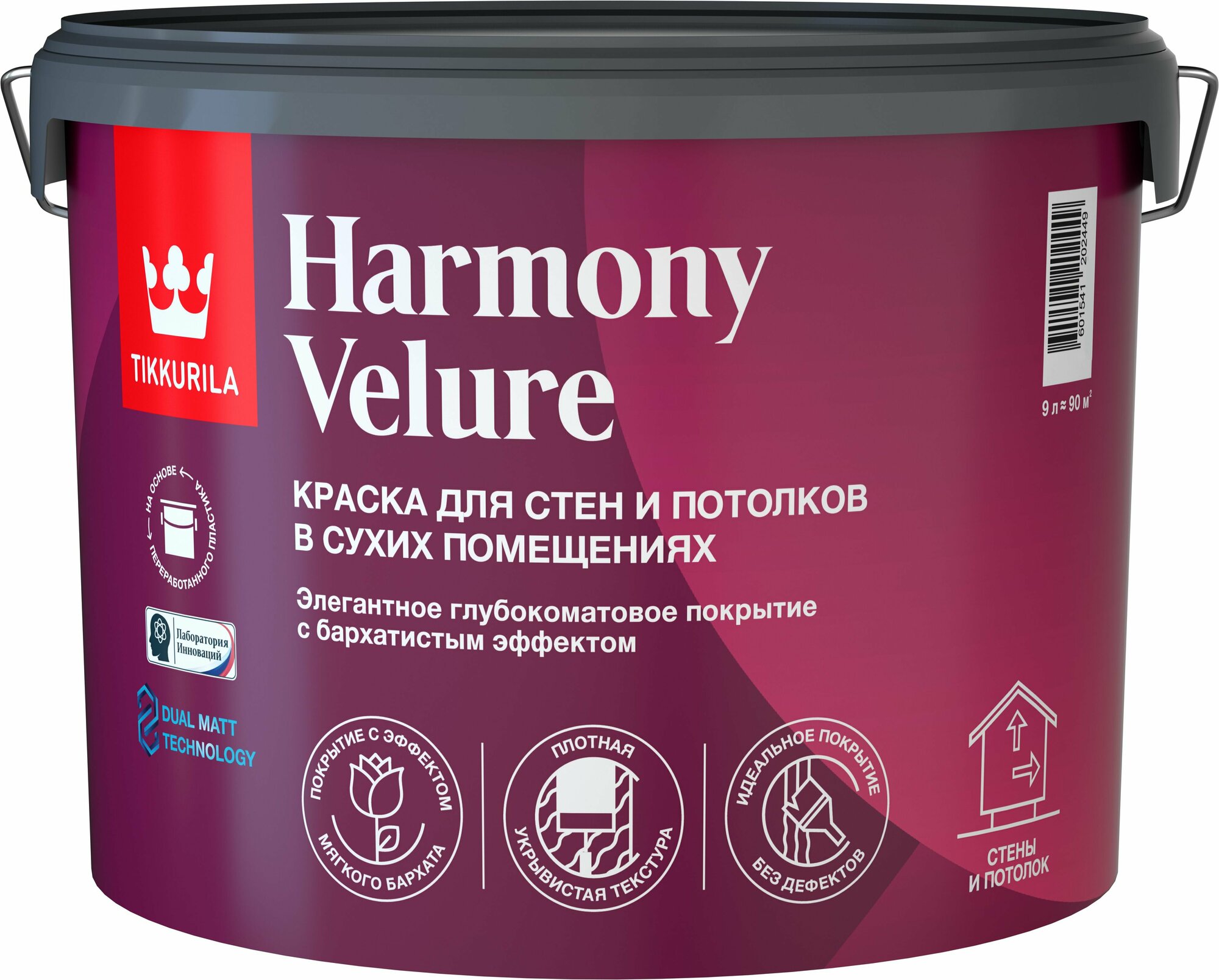 Краска для Стен и Потолков Tikkurila Harmony Velure 2.7л Глубокоматовая / Тиккурила Гармония Велюр.