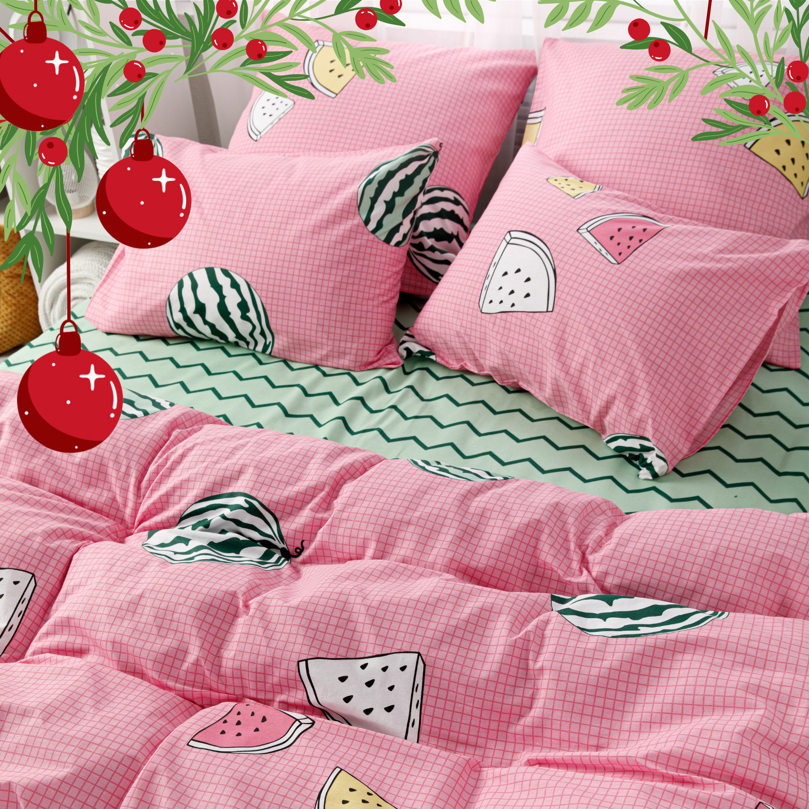 Постельное белье Евро Веселина, Арбузы, бязь, наволочки 50х70, 100% хлопок
