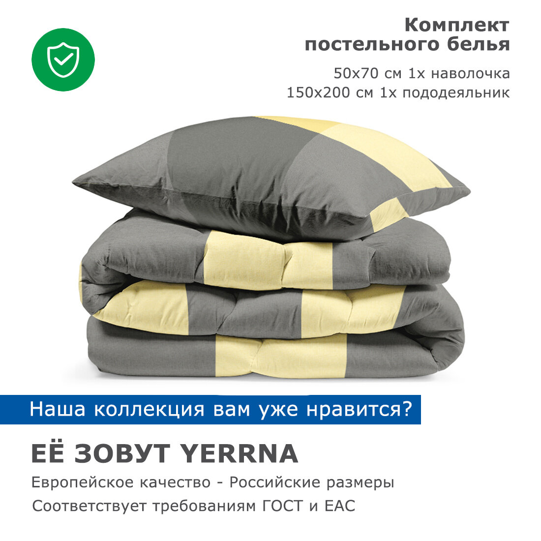 Купить Комплект постельного белья 1 спальный YERRNA, наволочка 50х70 1шт, перкаль, желтый, с2081шв/213433