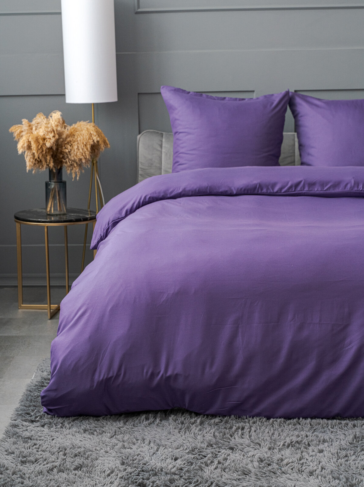 Постельное белье евро Павлина Манетти полисатин однотонный, (лиловый/серый) S23