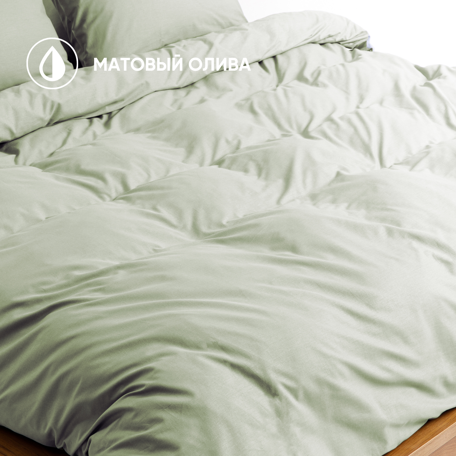 Постельное белье на молнии однотонное Urban Family (аналог икеа), Олива, евро, наволочки на молнии 50х70, 100% хлопок, перкаль