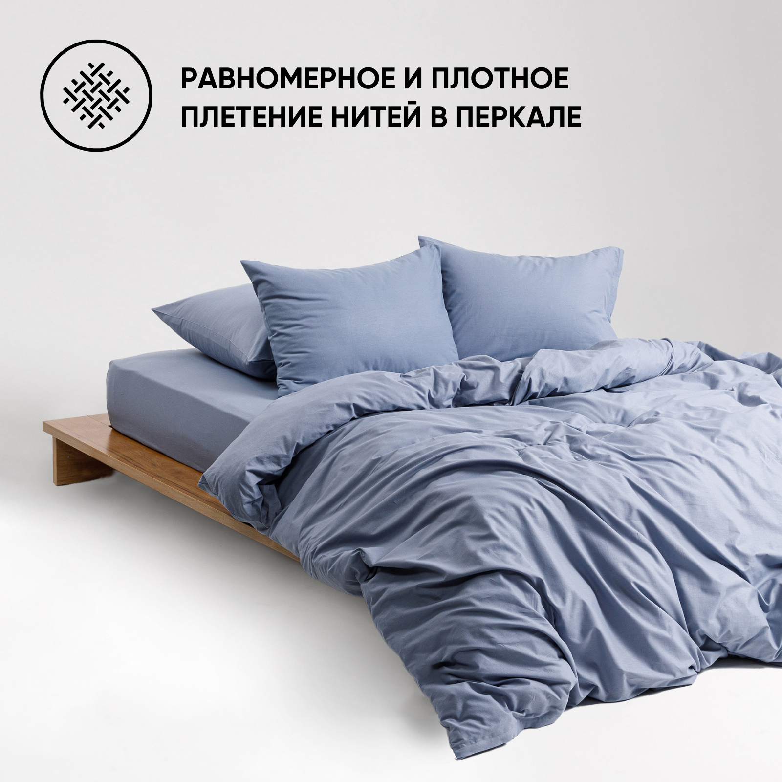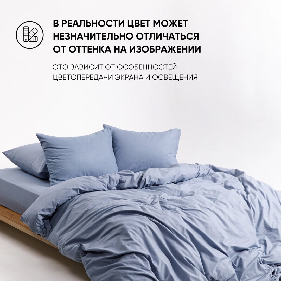 Постельное белье однотонное Urban Family (аналог икеа), Деним, 1 5 спальное, наволочки на молнии 70х70, 100% хлопок, перкаль