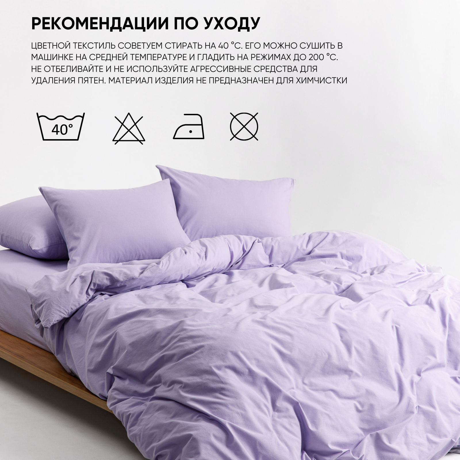 Купить Постельное белье на молнии однотонное Urban Family (аналог икеа), Лавандовый, евро, наволочки на молнии 50х70, 100% хлопок, перкаль