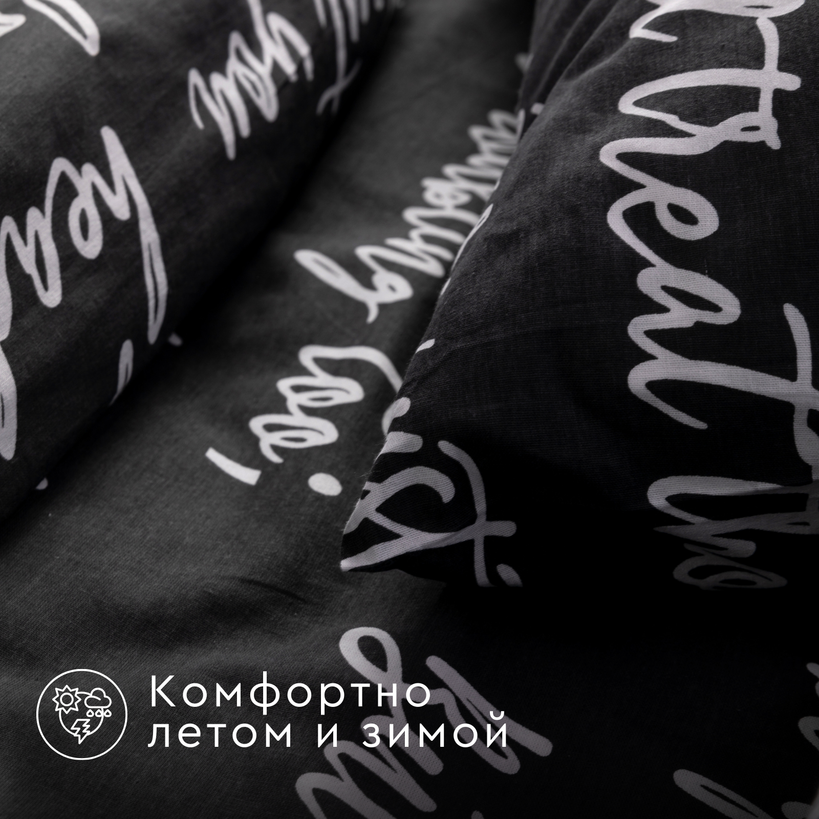 Постельное белье Евро Веселина Леттеринг, наволочки 70х70, бязь, хлопок 100%