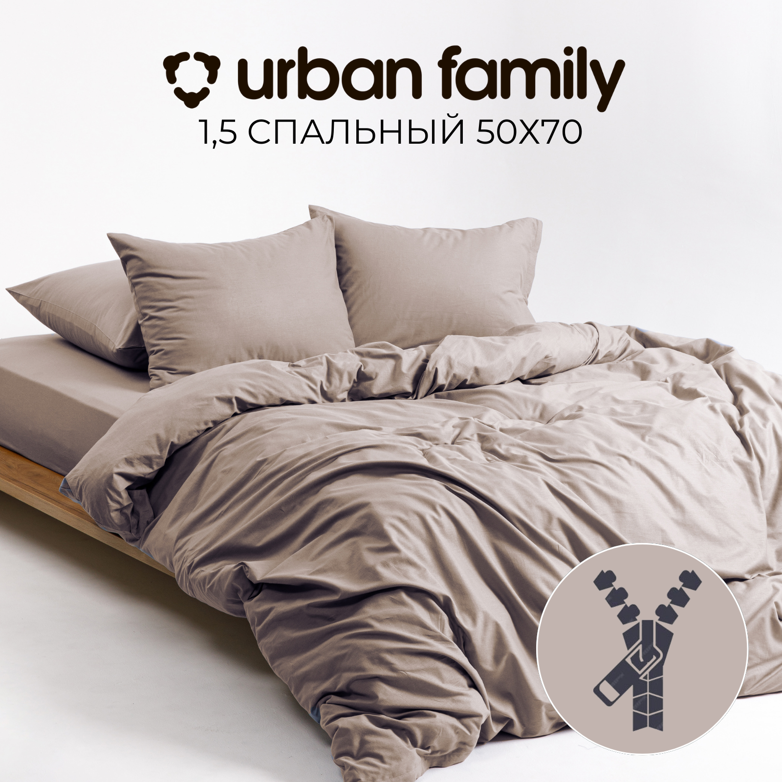 Постельное белье на молнии однотонное Urban Family, Руфус, 1.5-спальное, наволочки на молнии 70х70, 100% хлопок, перкаль