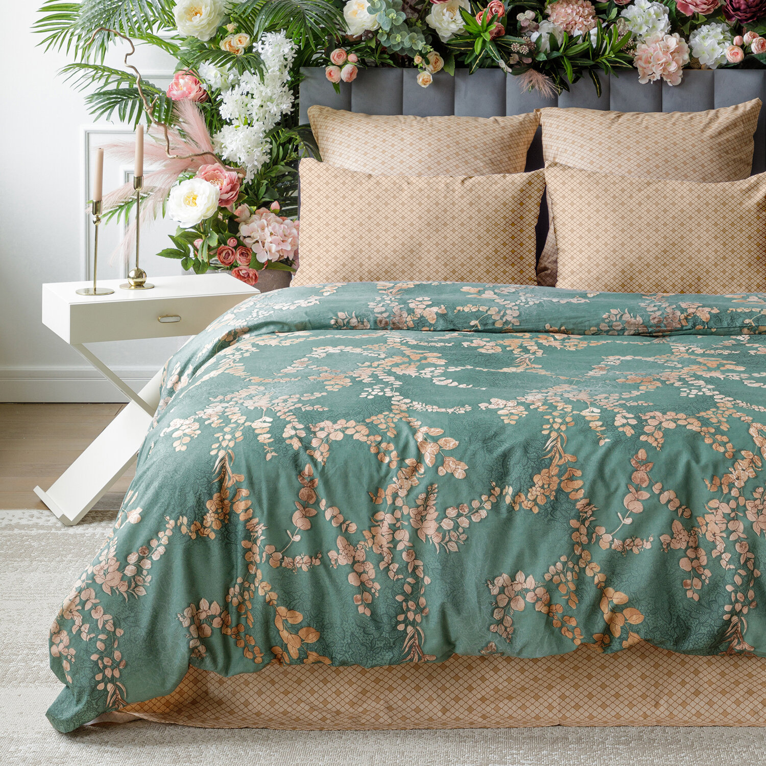 Постельное белье Евро Mia Cara, Перкаль, 4 нав. (50х70-2шт; 70х70-2шт), на резинке, Таинственный сад ,зеленый
