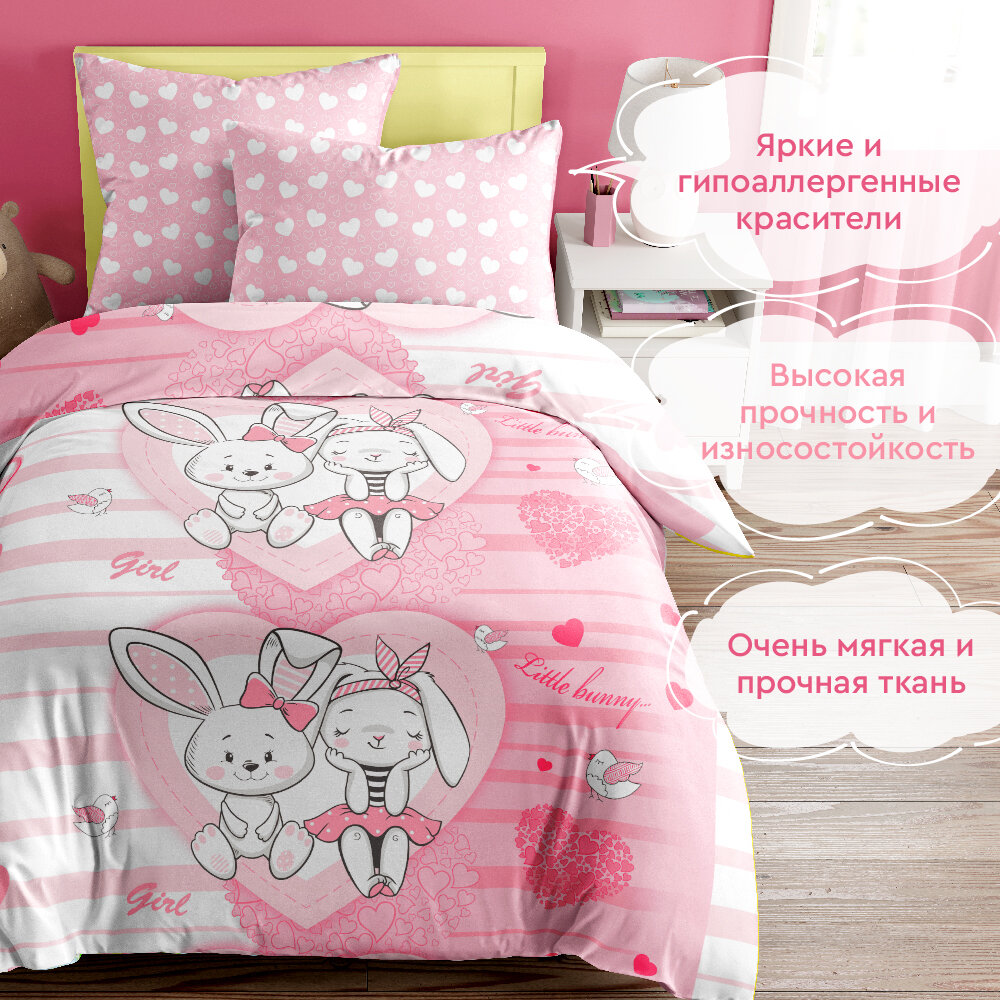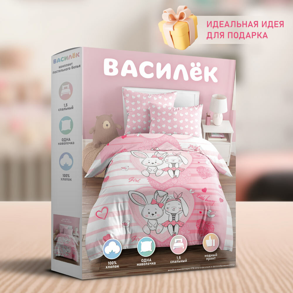 СохранитьПостельное белье для детей Василек 1,5-спальное, Бязь, наволочка 70х70, Ми ми зайки интересное:
