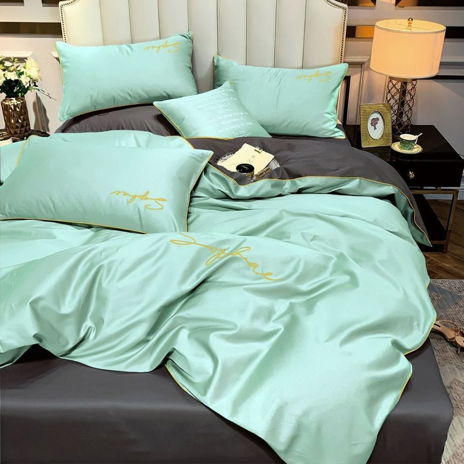 Комплект постельного белья Good Sleep из Сатина Евро Однотонное Хлопок Простыня 220x240 см Серый Бирюзовый