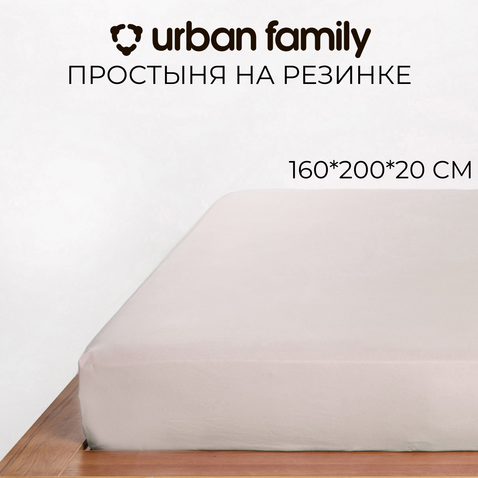 Простынь на резинке 160х200 см, Urban Family (аналог икеа) Кварц, перкаль, 100% хлопок