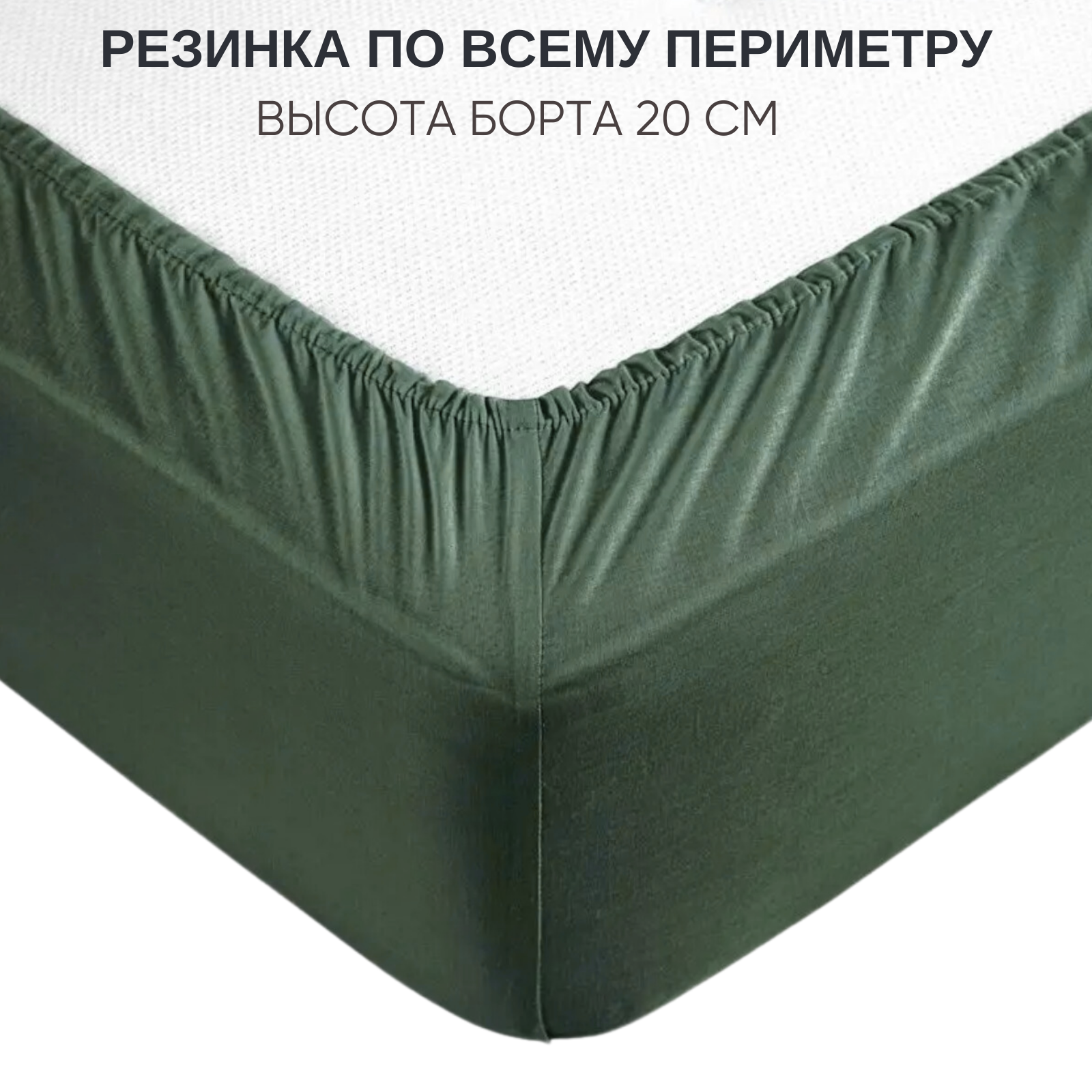 Простынь на резинке 160х200 см, Urban Family (аналог икеа) Олива, перкаль, 100% хлопок