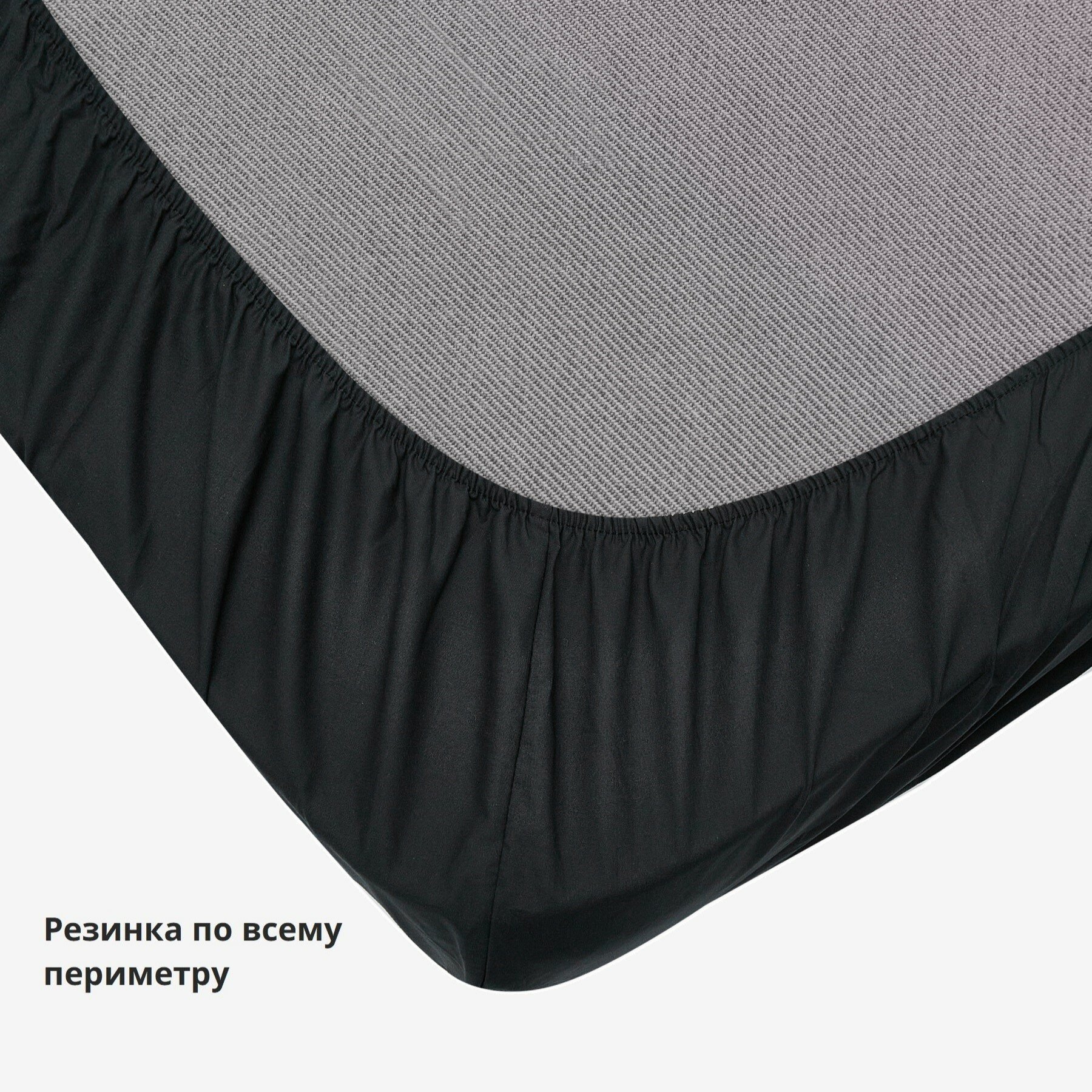 Простынь на резинке 160х200 см, поплин, черный, Feresa Hygge амилия/DVALA, аналог икеа