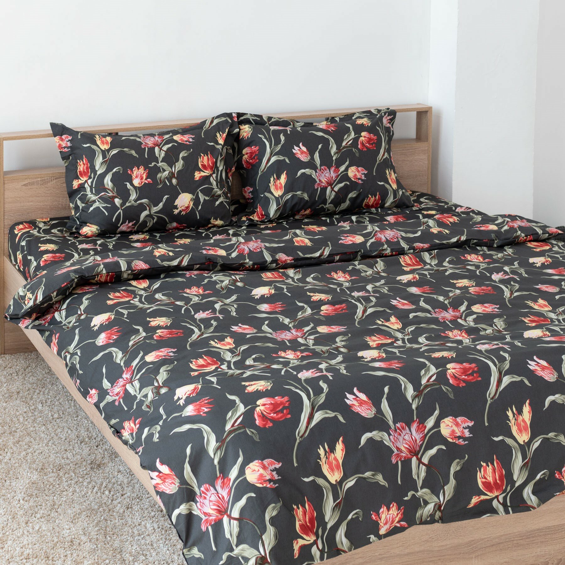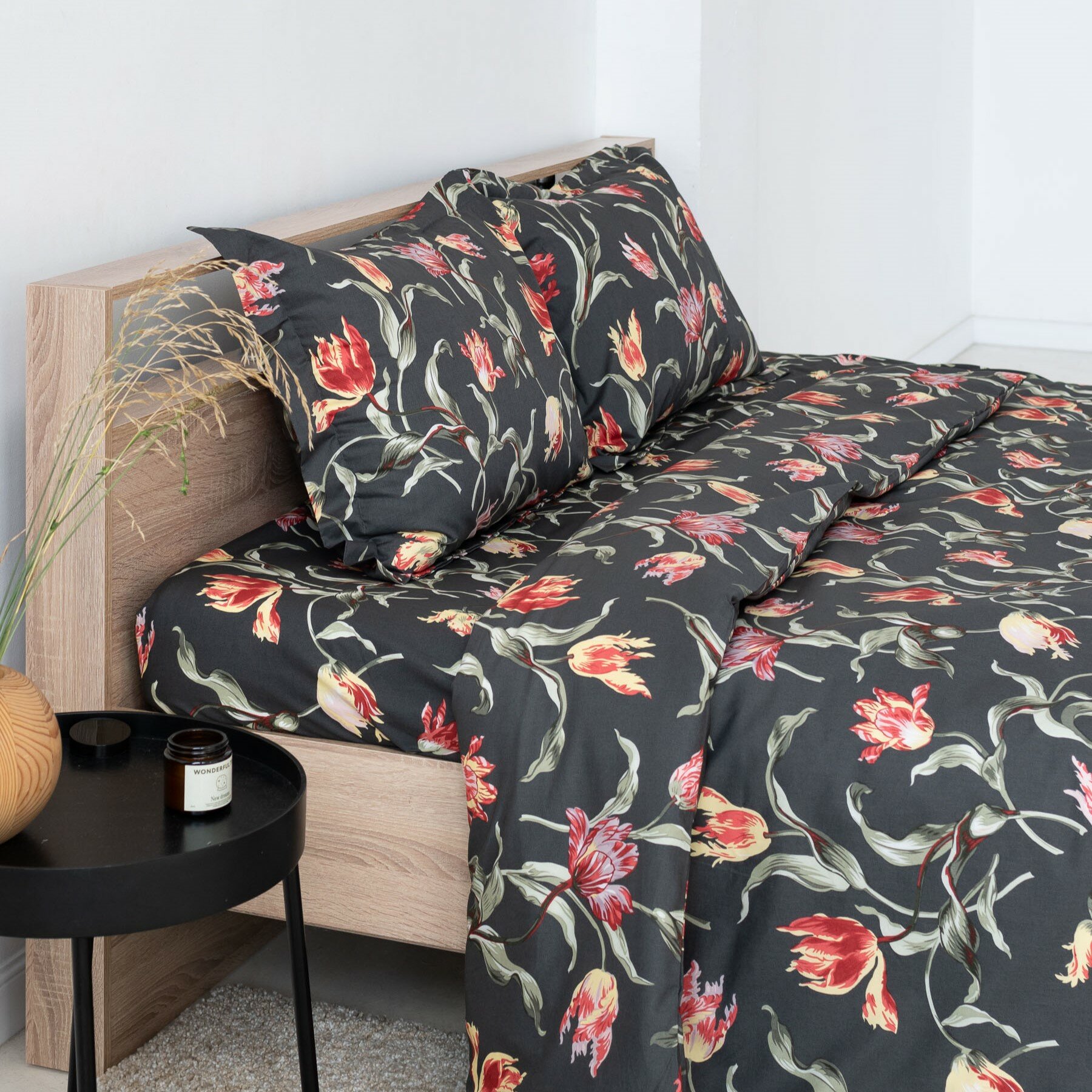 Простынь на резинке 160х200 см, поплин, черный, Feresa Hygge амилия/DVALA, аналог икеа
