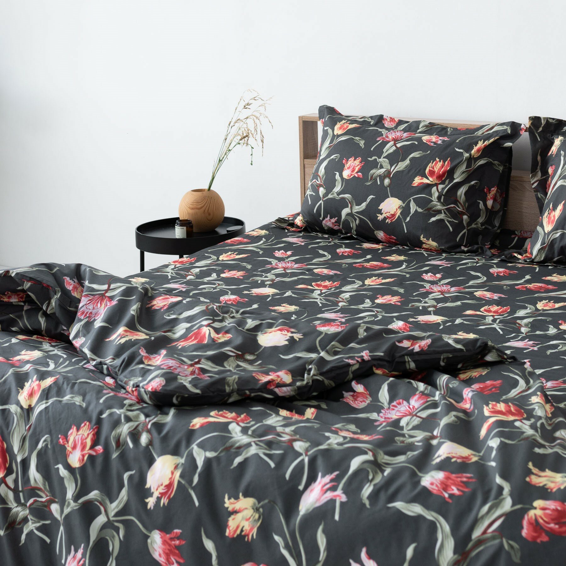 Простынь на резинке 140х200 см, поплин, темно-серый, Feresa Hygge аланд/ÅLANDSROT, аналог икеа