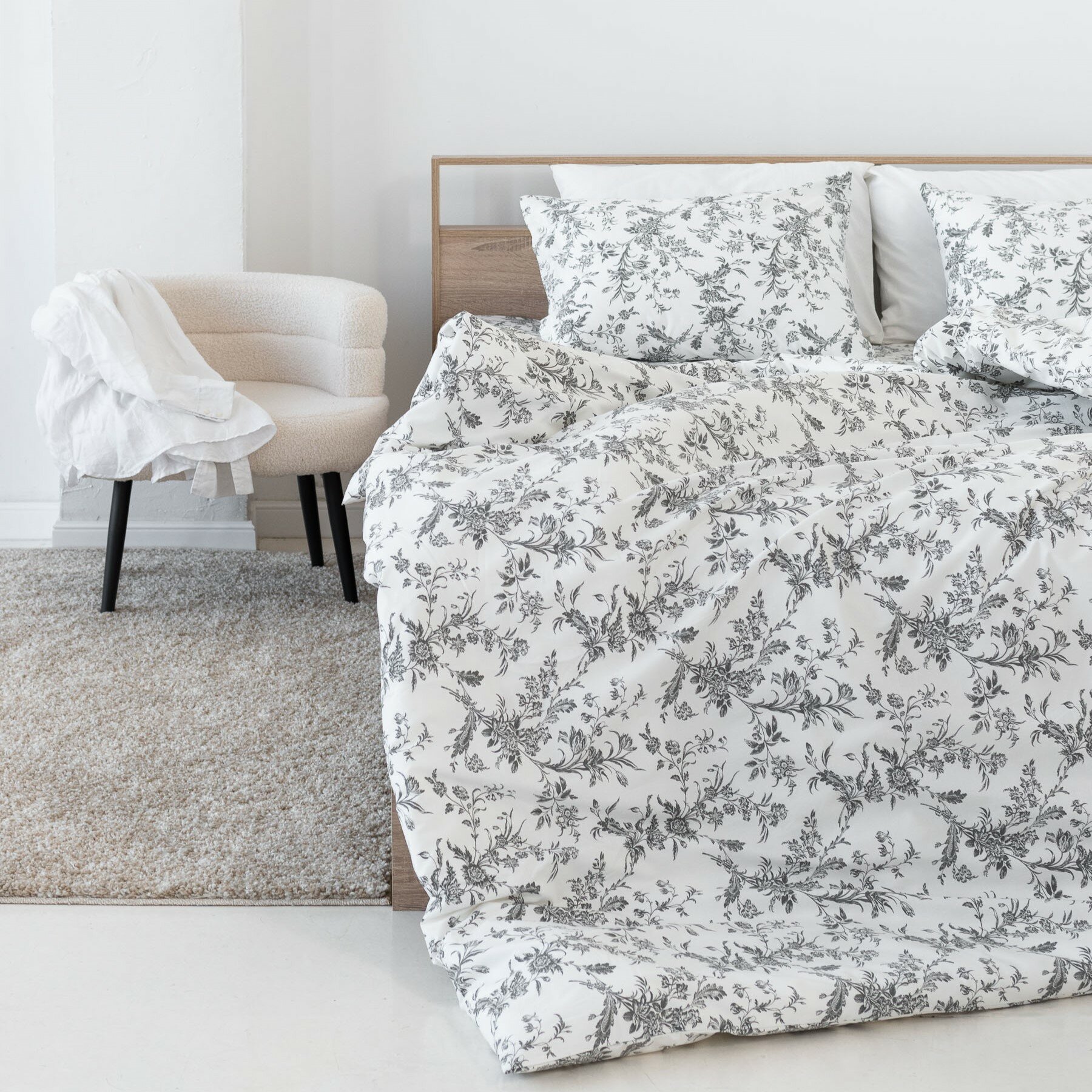 Простынь на резинке 160х200 см, поплин, белый/серый, Feresa Hygge алва/ALVINE KVIST, аналог икеа