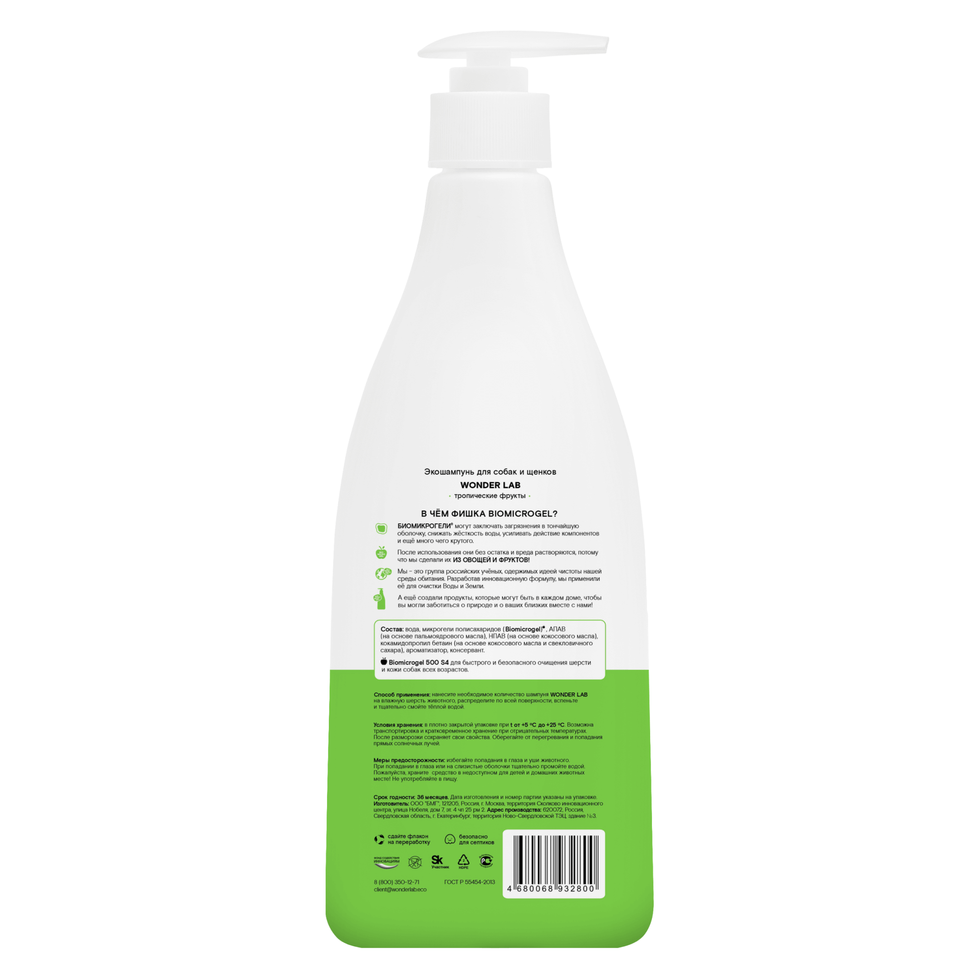 Гипоаллергенный шампунь для собак WONDER LAB, экологичный, тропические фрукты, 550 мл
