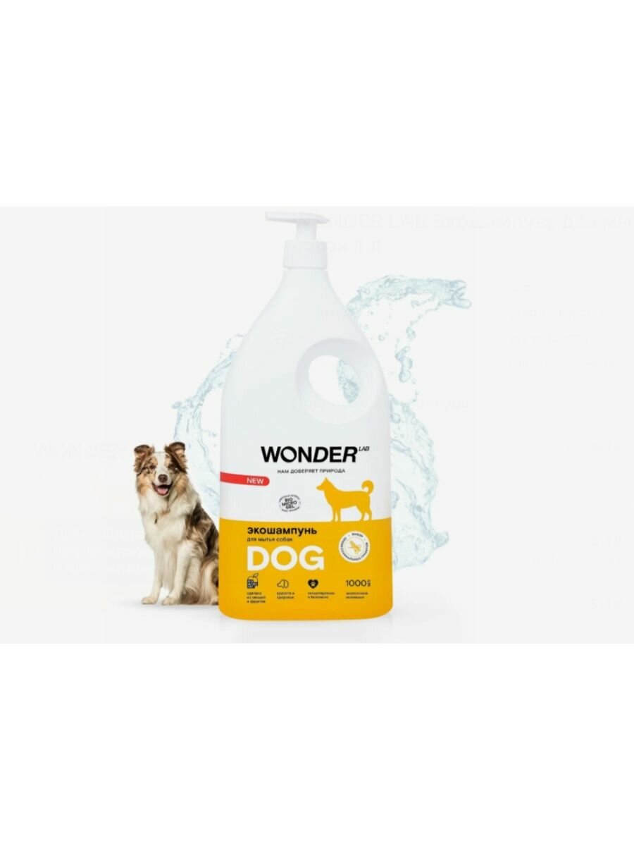 Эко шампунь для собак и щенков гипоаллергенный WONDER LAB, для мытья шерсти и лап длинношерстных и короткошерстных пород, без запаха, 1000 мл