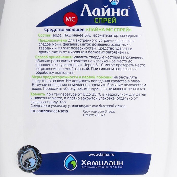 Лайна-мс – Ветеринарное моющее дезинфицирующее средство Лаванда спрей 750 мл