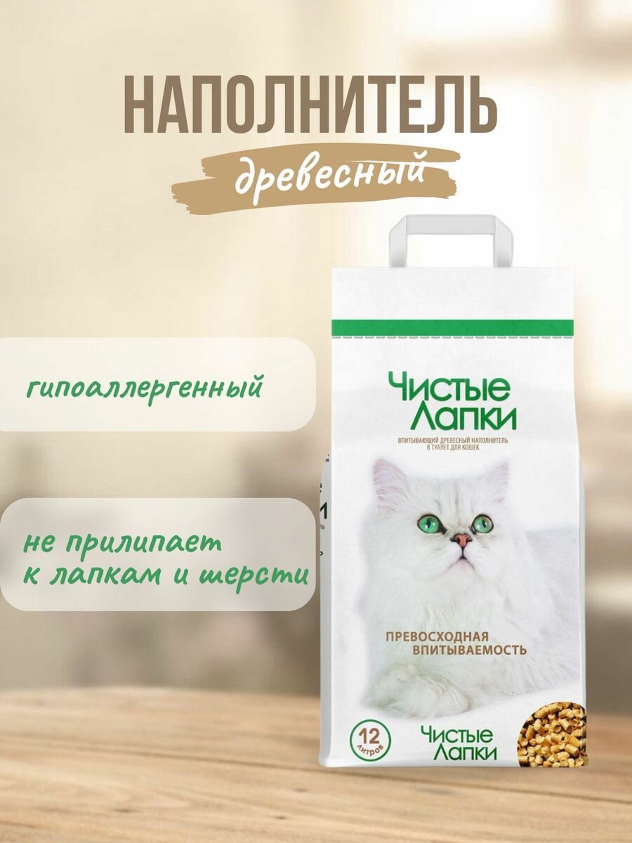 Чистые лапки – наполнитель древесный для туалета кошек (12 л) интересное: