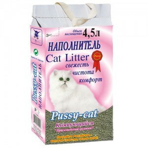 PUSSY-CAT комкующийся прасковейский розовый наполнитель комкующийся для туалета кошек (4,5 л)