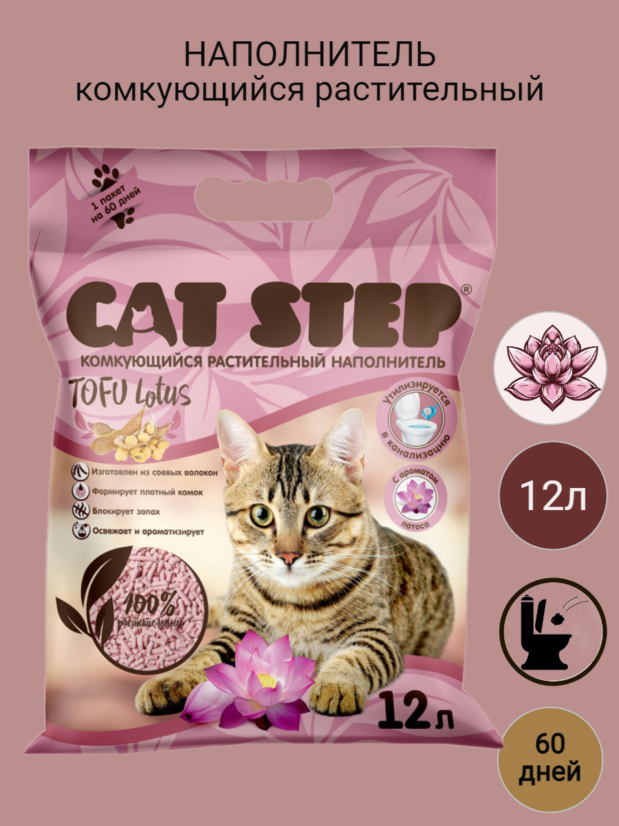 Cat Step Комкующийся растительный наполнитель Tofu Lotus, 12 л 20333007 5,62 кг 53627 (2 шт)