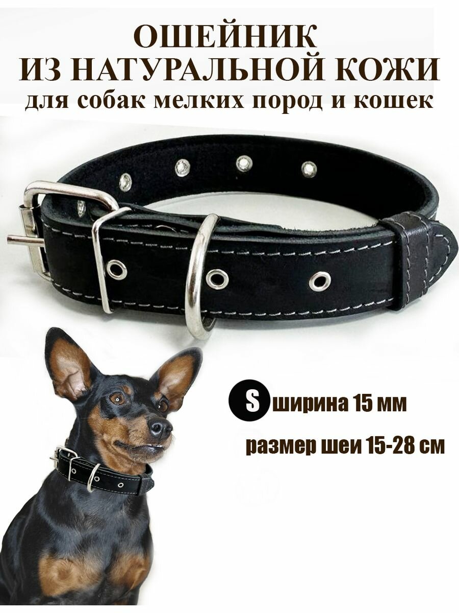 Купить Ошейник для собак мелких пород Dober-Крут кожаный черный S 15-28 см